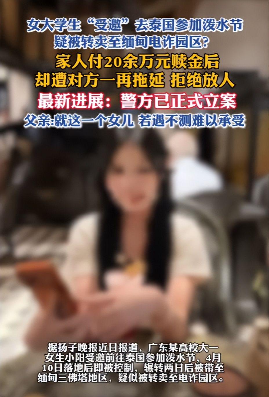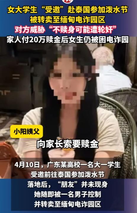 女大学生“受邀”去泰国参加泼水节,被转卖至缅甸电诈园区,家人付20余万元赎金后,对方却一再拖延,拒绝放人----2026-04-22----扬子晚报