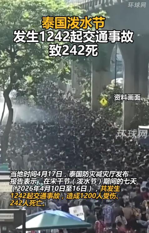 据泰国交通部最新统计,在今年为期七日的宋干节期间,全国共登记交通事故1242起,致伤人数达1200人,死亡人数攀升至242人。