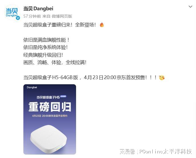 今天,当贝官方官宣当贝超级盒子H5全新升级64GB大存储版本重磅归来,并于今晚20:00首发预售开启。